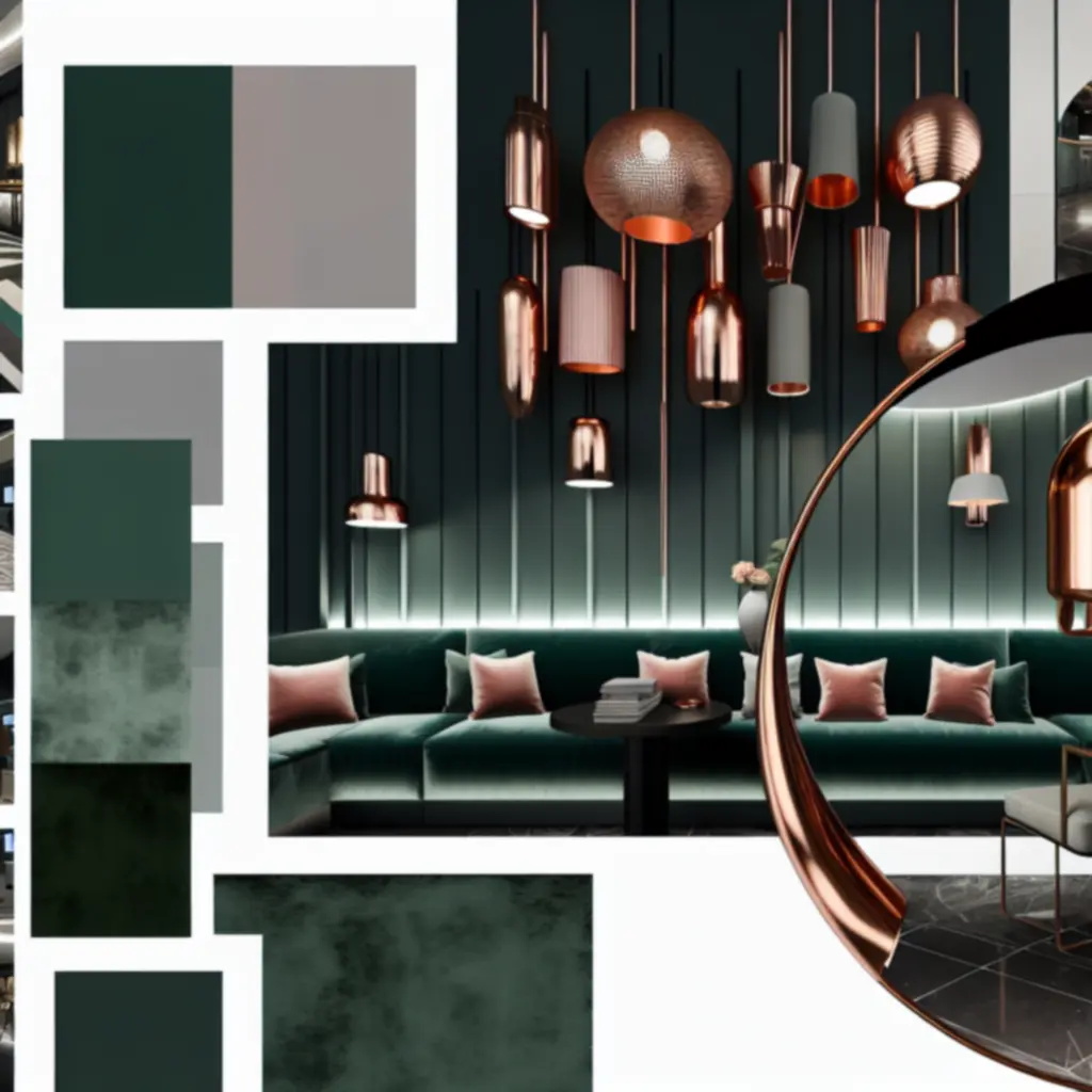 Nasz sygnaturowy koloryt – emerald green, matte black, rose gold, cream white i charcoal gray – przenika każdą przestrzeń, łącząc współczesną estetykę z artystycznym wyrafinowaniem i ciepłem.